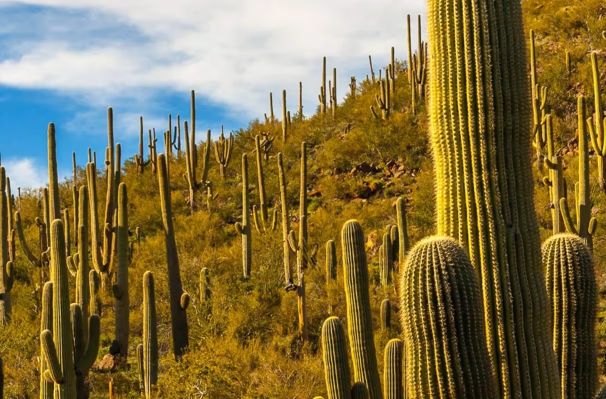 Along U.S. Route 93 between Wickenburg and Wikieup, the Joshua Tree Forest Parkway showcases dense Joshua trees against rugged Arizona terrain. This scenic route offers an immersive desert experience for travelers between Phoenix and Las Vegas.